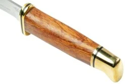 El Buck Fixed Ranger 2022 Limited Edition es un hermoso cuchillo de caza con un diseño clásico. Este cuchillo tiene una hermosa guarda de latón con un revestimiento de micarta. Y el mango, con un acabado increíblemente suave, está hecho de palisandro, una madera robusta con una hermosa veta natural. Los dedos caen automáticamente en las ranuras minimalistas del mango. El gran protector protege los dedos de forma eficaz. Incluso durante las tareas de corte más pesadas. El pomo también está hecho de una hermosa pieza de latón con un revestimiento de micarta.