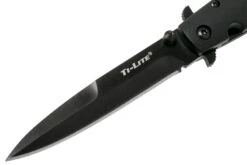 La Cold Steel Ti-Lite es una navaja fina que se puede abrir de varias maneras. Por ejemplo, se puede abrir con el flipper, el perno para el pulgar o el flipper frontal. La hoja está hecha de acero CPM S35VN. Un tipo de acero inoxidable americano. La hoja tiene una forma puntiaguda y fina de punta de lanza. Un diseño realmente clásico. El bloqueo liner-lock garantiza que el cuchillo no se cierre cuando no lo desees.