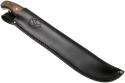 El Condor Ironpath Knife 3928-9.8HC es un machete que se asemeja a un clásico cuchillo bolo. Por su tamaño y peso, se nota enseguida que está pensado para cortar y talar. La hoja tiene un afilado bastante grueso, con una especie de filo escandinavo convexo. Una fuerte combinación. Está diseñado para abrirse paso por la selva, de ahí el nombre de «ironpath» (sendero de hierro).