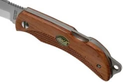Esta navaja es polivalente y es ideal para uso en exteriores. Este modelo es ligeramente más compacto que el Swede 10. Nadie se podrá sentir ofendido por este cuchillo. El cierre trasero y la hoja de acero Sandvik 12C27 de primera calidad ofrecen la solidez y la fiabilidad que se espera de un cuchillo de este tipo. La hoja está dotada de prácticas ranuras para un buen agarre. No es muy sofisticada, pero es perfecta para el uso diario. La hoja no se puede abrir con una sola mano, por lo que también se puede utilizar en países donde la legislación lo prohíbe. Y en la práctica esto no supone una desventaja.