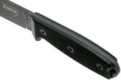 El ESEE Model 4 es un cuchillo de supervivencia sólido con una hoja hecha de acero carbono 1095. El revestimiento en polvo extremadamente sostenible de la hoja la protege de la sensibilidad a la corrosión del acero carbono. Las maravillosas cualidades de uso del acero garantizan una vida de diversión. La hoja full-tang se ha mejorado con un mango G10. Este mango se siente un poco rugoso, lo que es estupendo para el agarre y la comodidad. El ESEE 4 es suficientemente grande para darle a tus manos el espacio que necesitan sin convertirse en un cuchillo gigantesco.