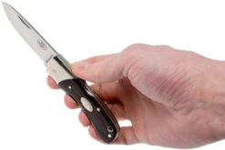 La Fällkniven FH9 es una navaja de diseño elegante y compacto. Al ser tan fina, resulta muy cómoda en el bolsillo. Las cachas de micarta granate están realzadas con una fina estructura. La hoja se abre con las dos manos y un sólido bloqueo trasero la mantiene en su sitio cuando se abre. La hoja droppoint está hecha de acero 3G. Según Fällkniven, este es uno de los mejores tipos de acero en cuanto a la retención del filo.