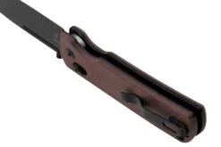 Esta Kizer Escort Ki4481A1 es una genial navaja de Kizer, diseñada por Dirk Pinkerton. Inmediatamente se nota el mecanismo de cierre. La navaja Escort se ha mejorado con un «bloqueo Clutch Lock», como lo llaman en Kizer. Esta es su versión de una cerradura Axis. Un gran mecanismo que hemos visto antes en los cuchillos Benchmade. La hoja se abre fácilmente con los pernos para el pulgar.