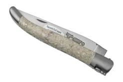 El Laguiole en Aubrac Oyster es una versión moderna del clásico cuchillo Laguiole. El cuchillo tiene un mango especial hecho de conchas de ostras molidas y un cabezal y un filo mate. Esta navaja está hecha a mano para garantizar un acabado refinado.