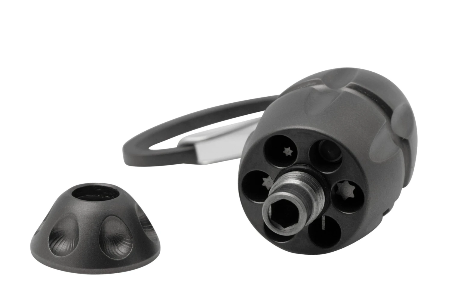 El LionSteel Eggie es un accesorio de alta calidad para tu llavero. Puedes utilizar el Eggie para varias tareas, ¡porque es una multiherramienta! O un juego de brocas, depende de cómo se mire. La Eggie tiene muchas herramientas diferentes, como destornilladores torx, un pequeño cuchillo y un rompecristales. Así que lo utilizas para apretar el tornillo de la bisagra de tu navaja o para abrir un paquete.