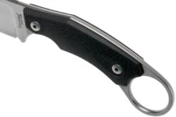 El Lionsteel H1 Skinner es un cuchillo fijo de exterior, diseñado por Tommaso Rumici. Es un robusto cuchillo fijo, y se puede ver inmediatamente que parte del diseño está inspirado en el karambit filipino o kerambit. Sin embargo, el Lionsteel H1 tiene una hoja Skinner, que es mucho más práctica que el hawkbill (gancho) que se ve en la mayoría de los karambits. Sin embargo, tiene el práctico anillo en el extremo del mango. Esto le da un agarre sólido, sea cual sea la forma en que decidas sujetarlo, y hace que sea más difícil perderlo. Especialmente si tienes el dedo índice o el meñique a través del anillo.