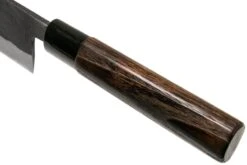 El Munetoshi Nashiji Black Gyuto 24 cm es un elegante y alargado cuchillo de chef japonés. En japonés, Gyuto significa «espadas de carne». Suena siniestro, pero sólo significa que originalmente este cuchillo se hizo para preparar la carne. Hoy en día, el cuchillo Gyuto se considera un cuchillo de chef polivalente para todas las tareas de corte en la cocina.