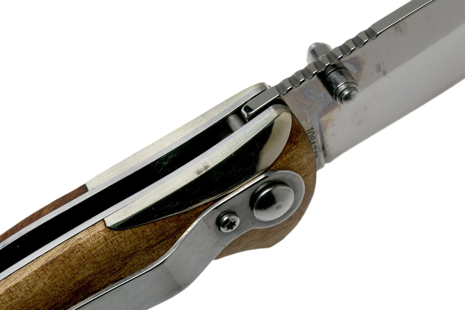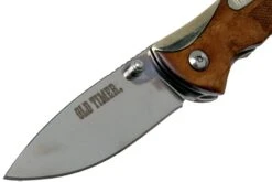 La Old Timer Assisted Opener 900OT es una navaja asequible, con un mango de madera desert ironwood. Es una divertida combinación de un clásico cuchillo de caza o de caballero, y una moderna navaja EDC. Como su nombre indica, tiene apertura asistida. Esto significa que un muelle ayuda a abrir el cuchillo con facilidad. Se puede abrir con el perno para el pulgar, y un bloqueo linerlock bloquea la hoja cuando se abre, manteniendo los dedos seguros.