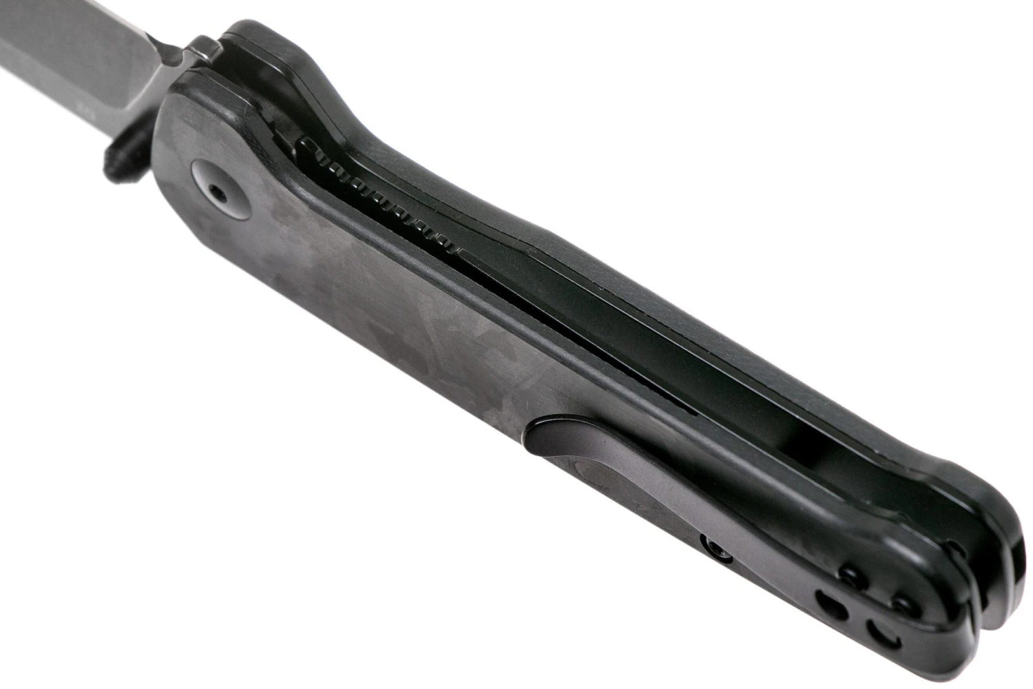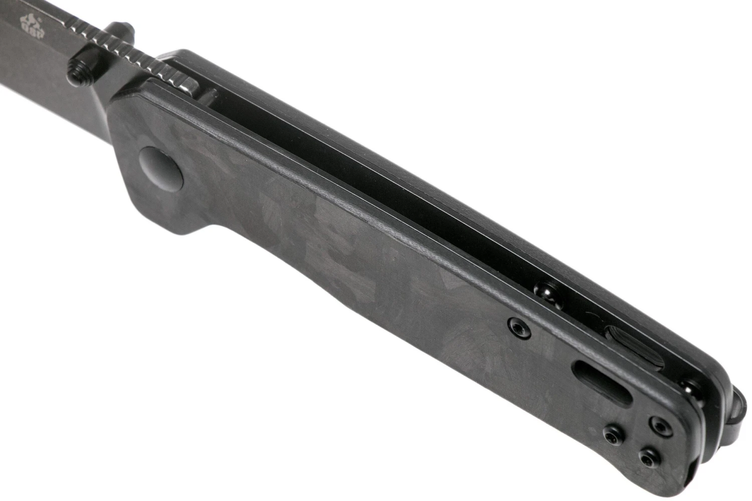 QSP Knife Penguin QS130-U Shredded Carbon Fibre G10, Blackwashed, Navaja