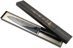 El cuchillo de chef Tojiro Shippu Black Damascus de 21 cm es el cuchillo de chef perfecto. La hoja de 21 cm de longitud es lo suficientemente grande y afilada para cortar carnes y verduras de todo tipo y tamaño.